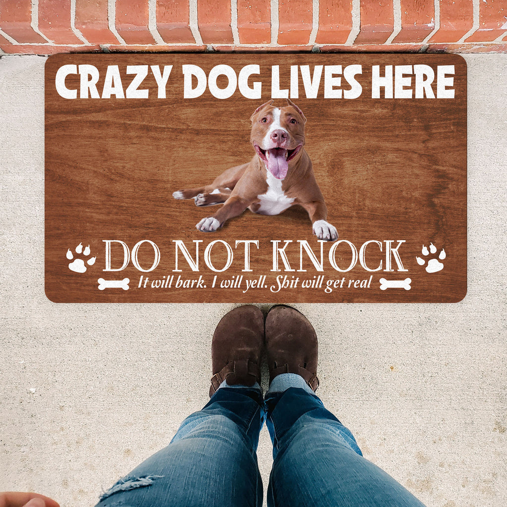 Custom Dog Doormat| Crazy Dog Lives Here Dog Welcome Mat| Gift for Dog Lovers, Dog Mom, Dog Owner| JDM68