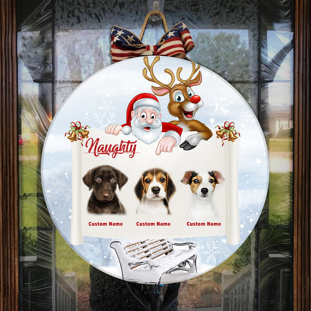 Custom Dog Welcome Sign - Santa Personalized Christmas Wooden Door Hanger for Dog Owners, X-mas Dog Sign Decor| NDH14