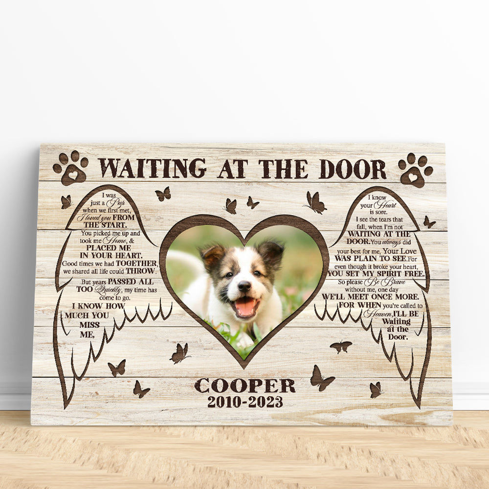 Dog Memorial Gift| Waiting At The Door Gifts For Loss of Dog Angel| Memorial Canvas Gifts for Dog NXM291