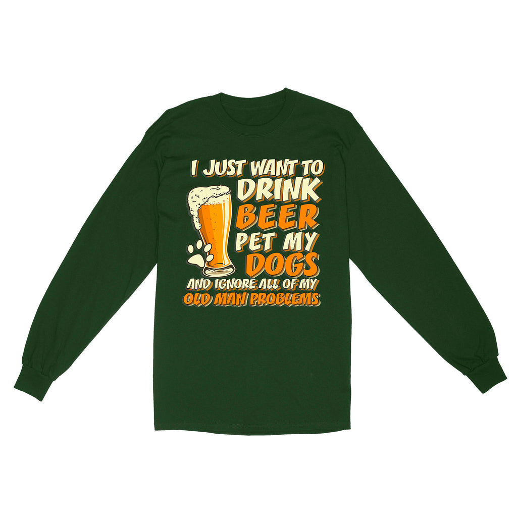 Funny Dog Lover Long Sleeve for Dog Owner, Dog Dad| Drink Beer Pet My Dog Ignore My Old Man Problem Shirt JTSD356