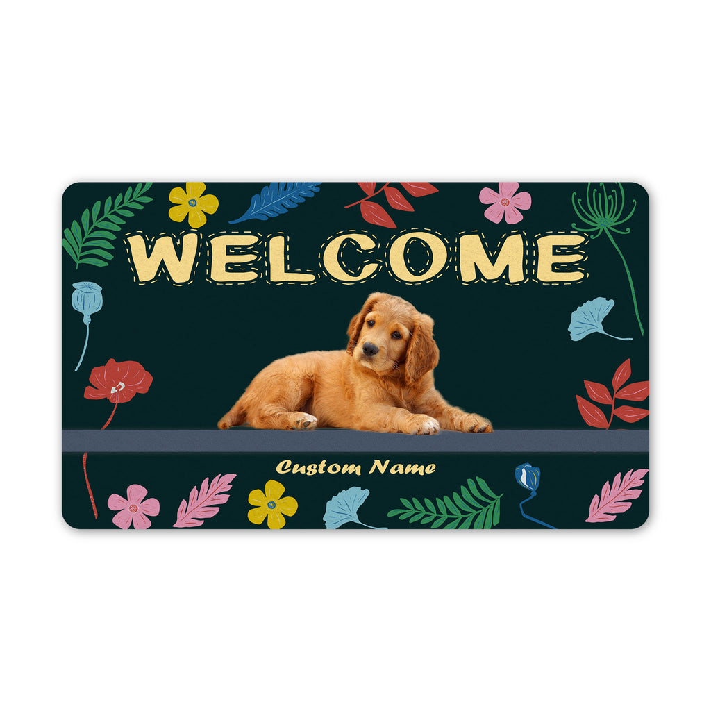 Personalized Dog Welcome Mat| Welcome Floral Dog Doormat Custom Gift for Dog Lover, Dog Owner| JDM61