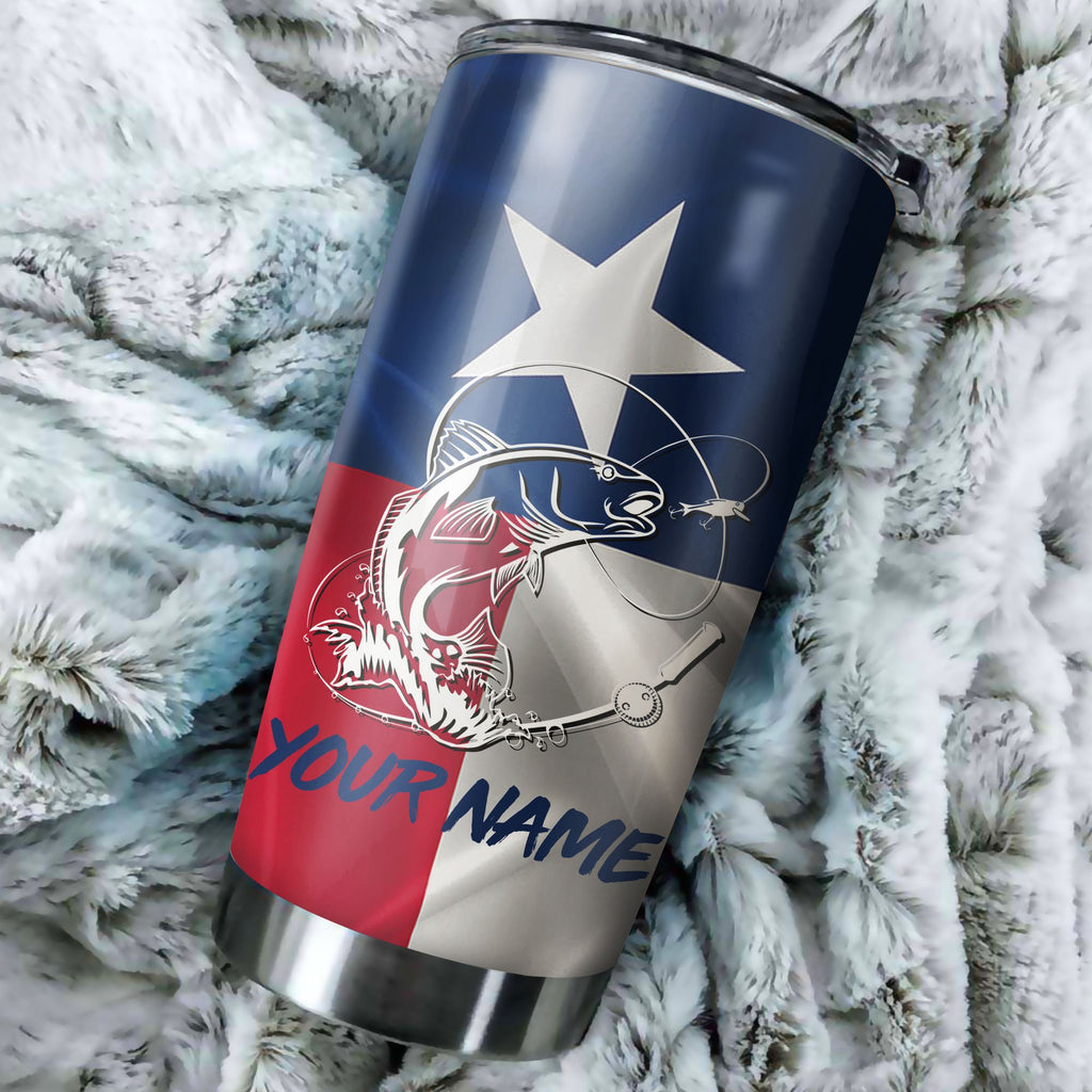 1PC Texas Redfish Puppy Drum fishing Customize name Stainless Steel Tumbler Cup Personalized Fishing gift fishing team - NQS776
