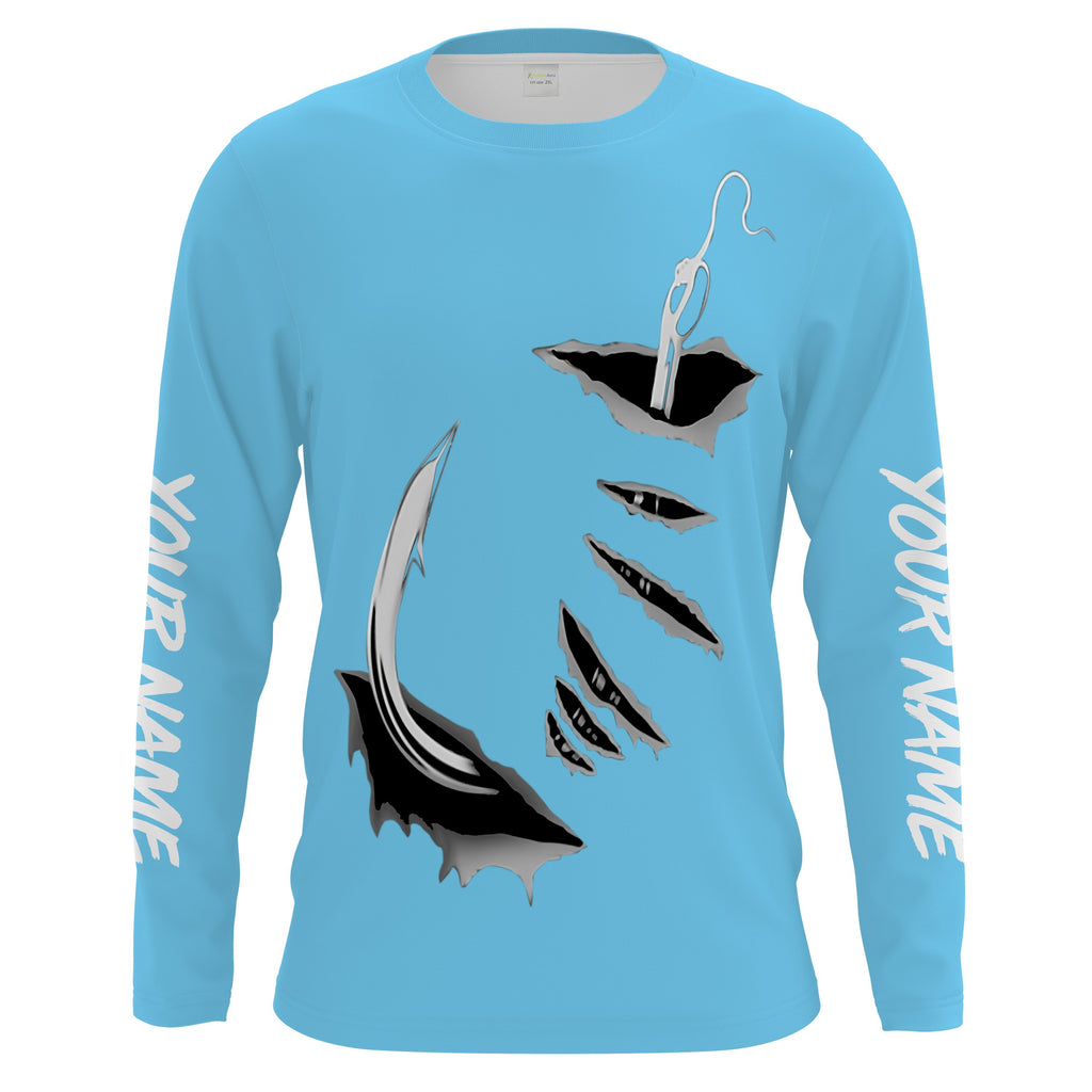 3D Fish hook Customize UV Protection Long sleeve performance Fishing Shirts | baby blue - IPHW1482