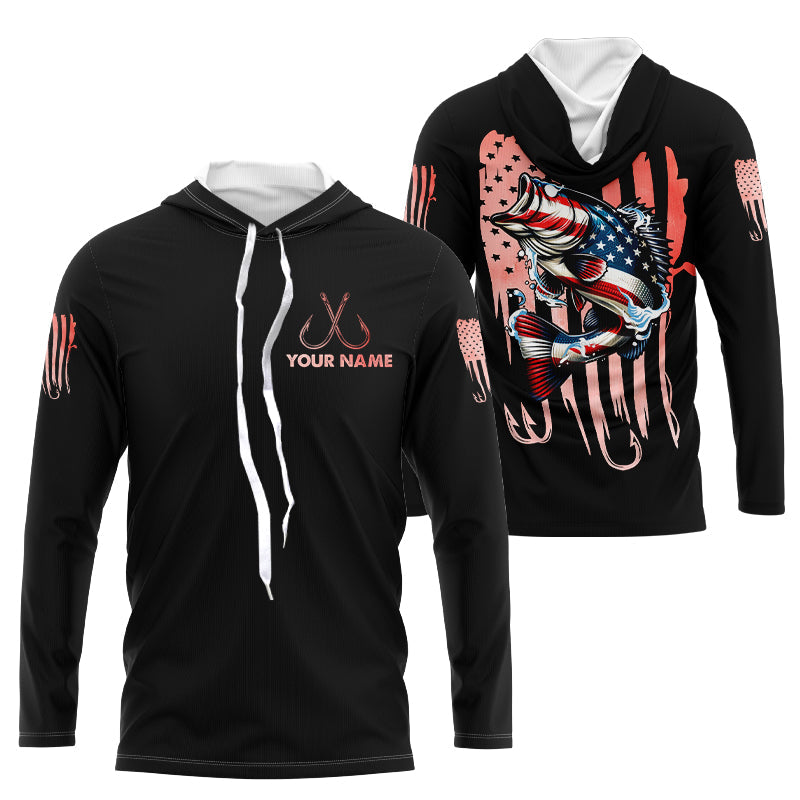 Bass Fishing American Flag patriotic Custom name long sleeves fishing shirt NQS2233