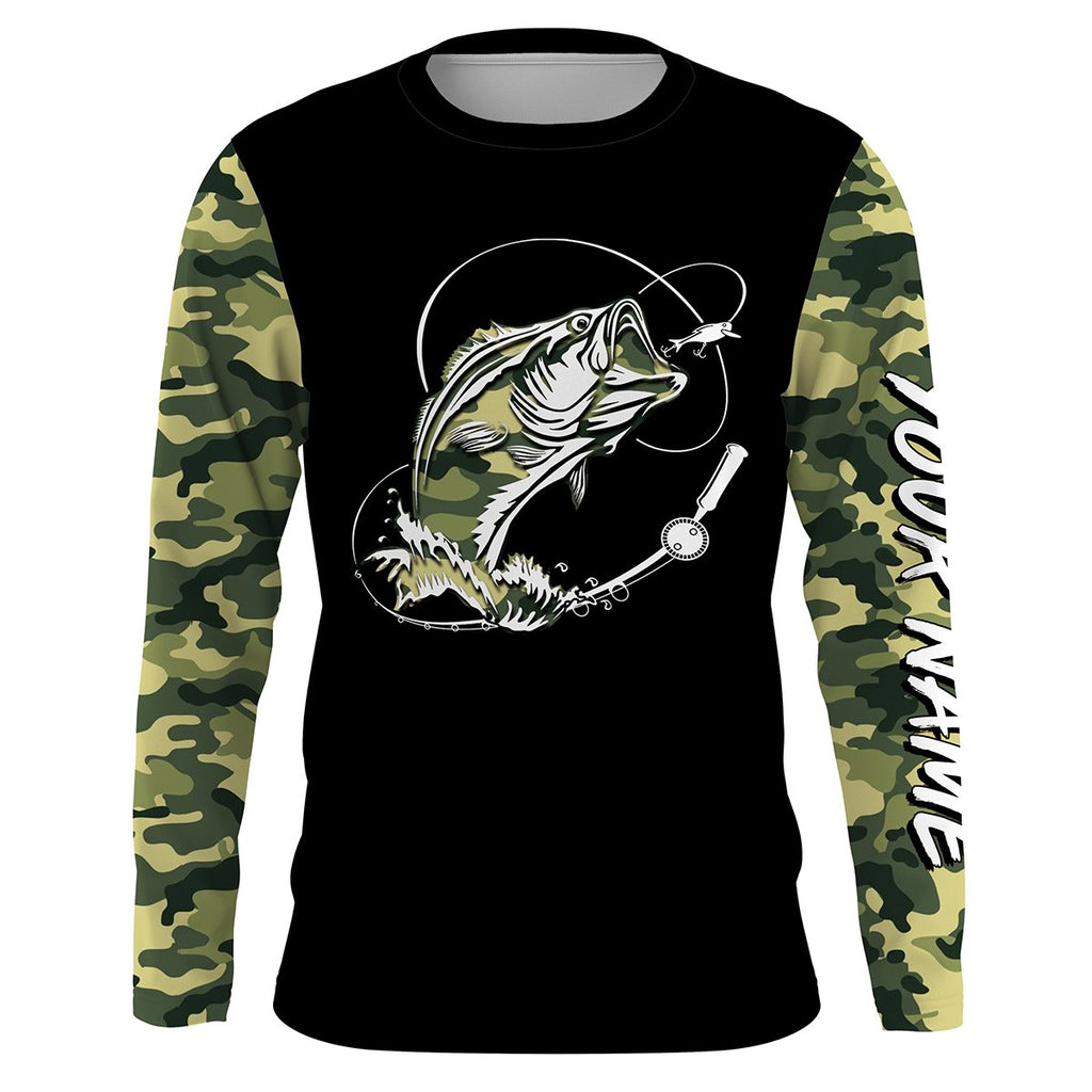 Bass Fishing tattoo green camo Custom Long Sleeve performance Fishing Shirts, personalized Bass Fishing jerseys NQS2408