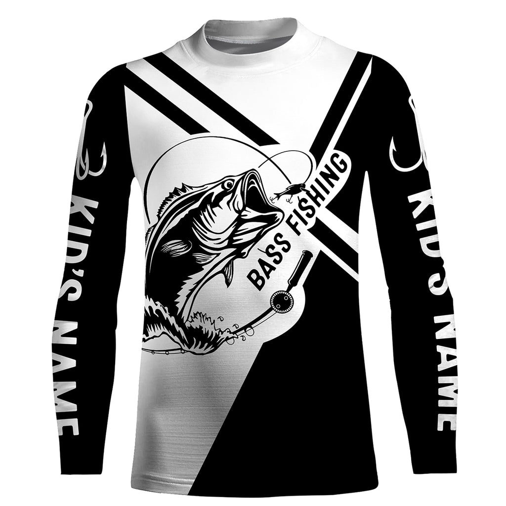 Bass fishing shirts Fish hook Black and White UV protection quick dry Customize name personalized long sleeves fishing shirts UPF 30+ HVFS049