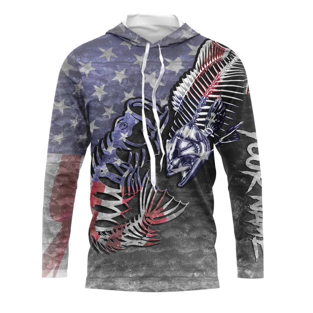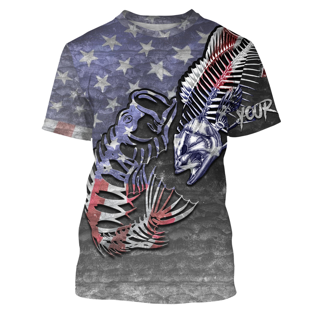 Bass Skeleton fishing UV protection quick dry Customize name long sleeves fishing shirts UPF 30+ TMTS006