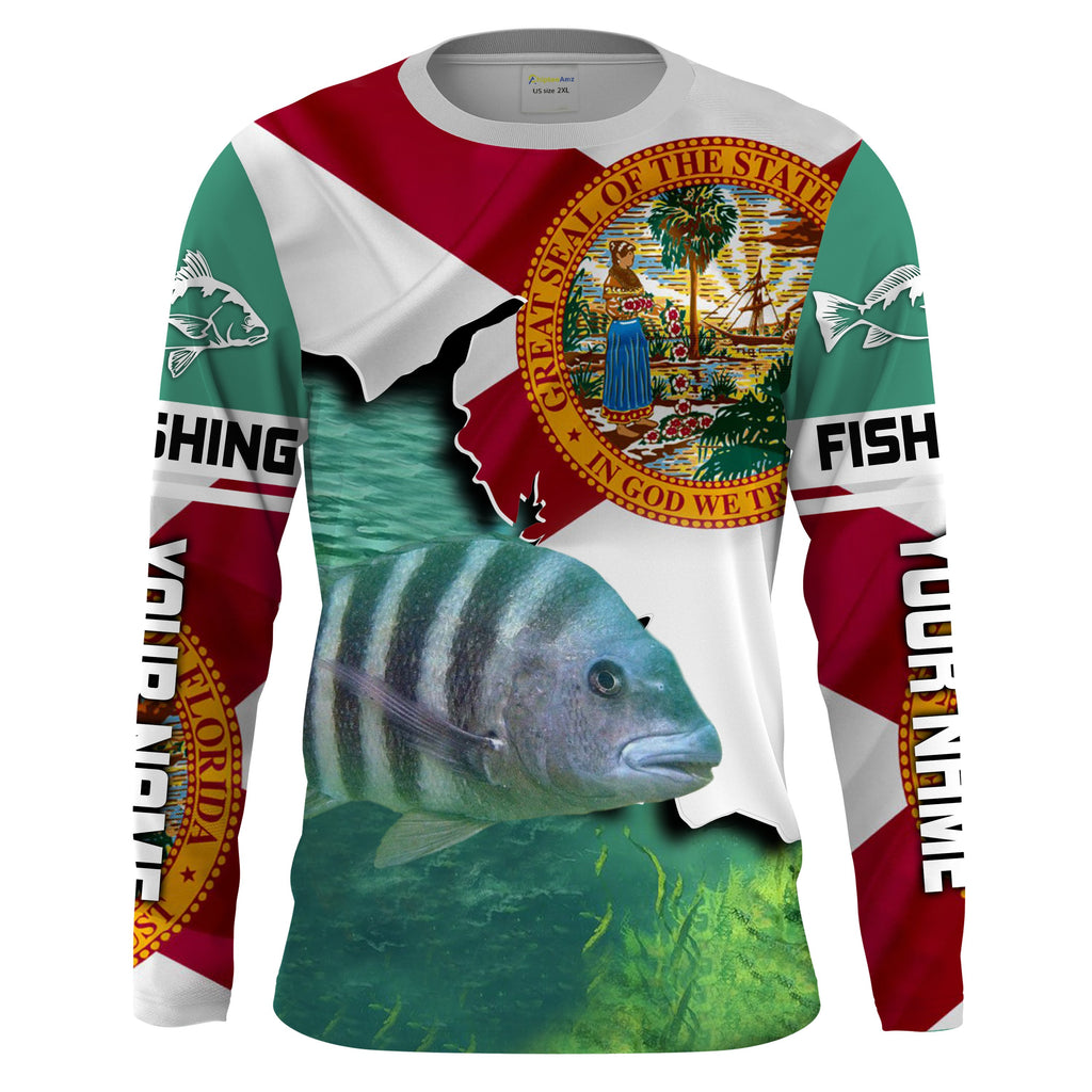 Black Drum Florida Flag Custom UV Long Sleeve Fishing Shirts, FL Tournement Fishing Shirts - IPHW818