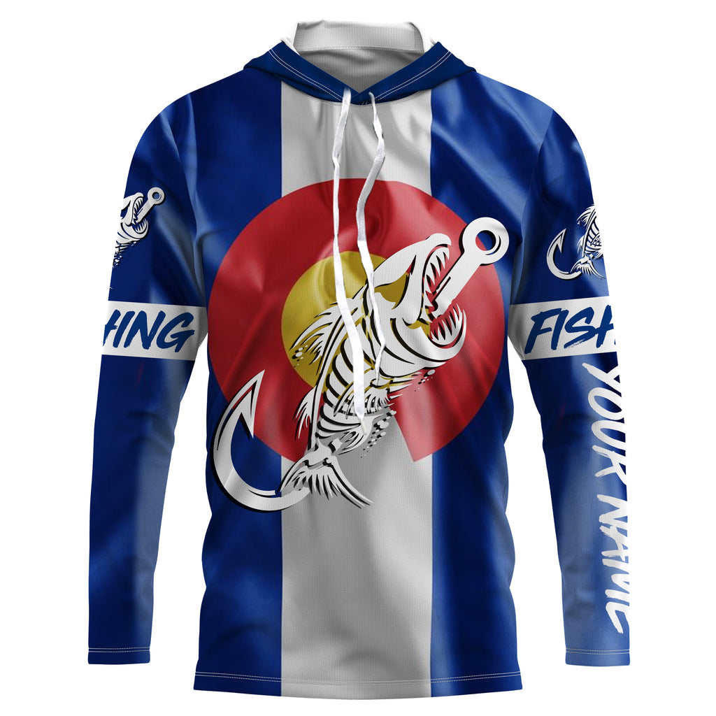 CO Fishing Custom Colorado Flag Fish hook skull Custom Name sun protection custom fishing shirts NQS3307