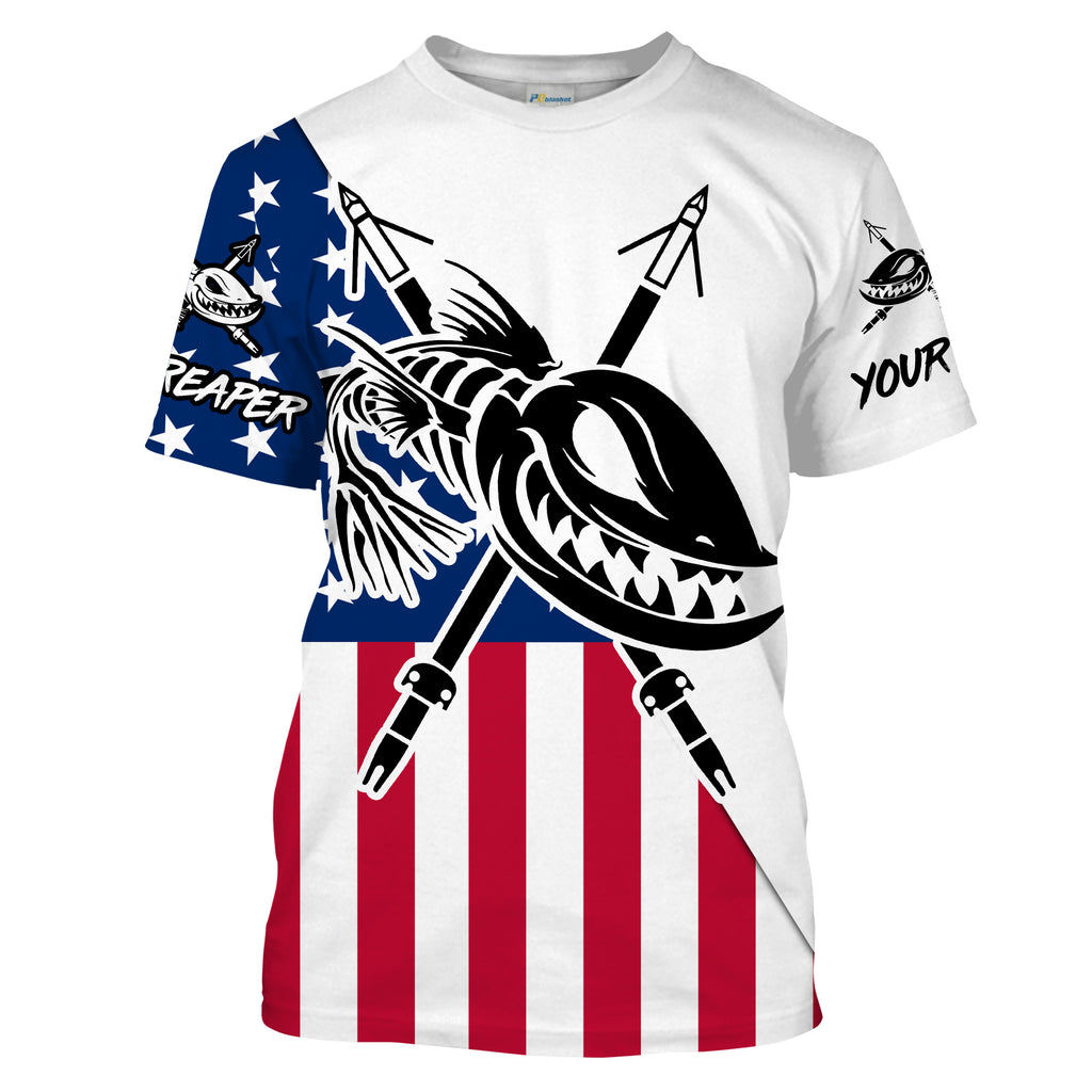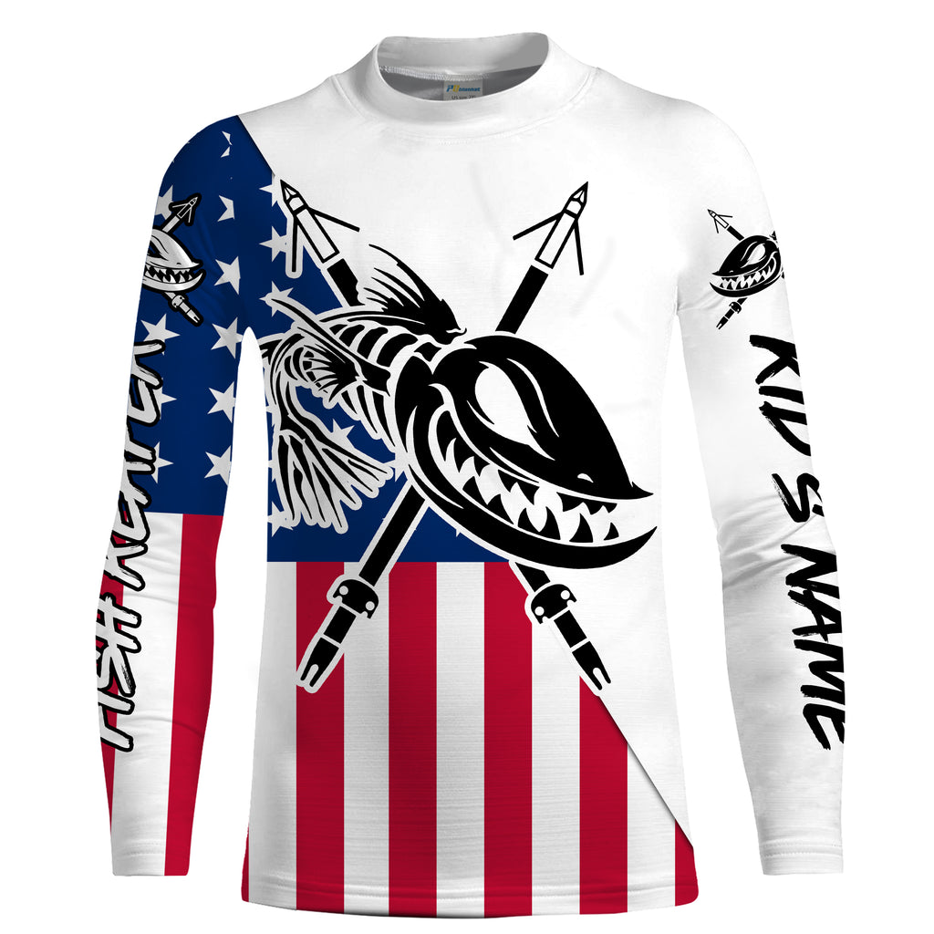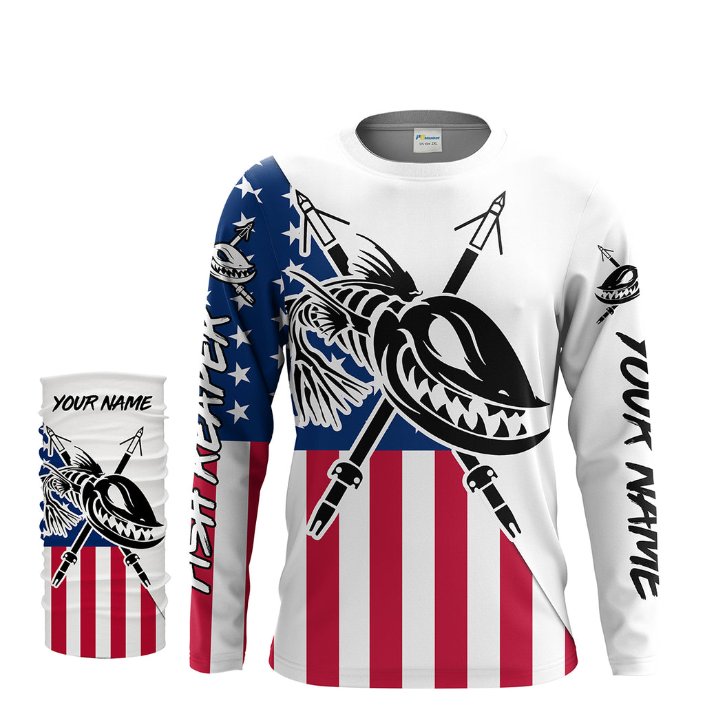Custom Bowfishing American Flag Fishing Shirts, Bow Fishing Long Sleeve Performance Fishing Shirts - IPHW1651