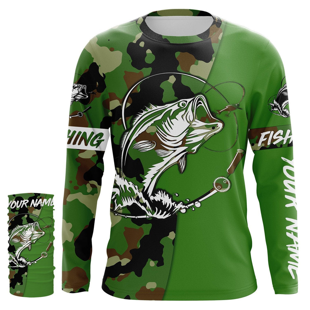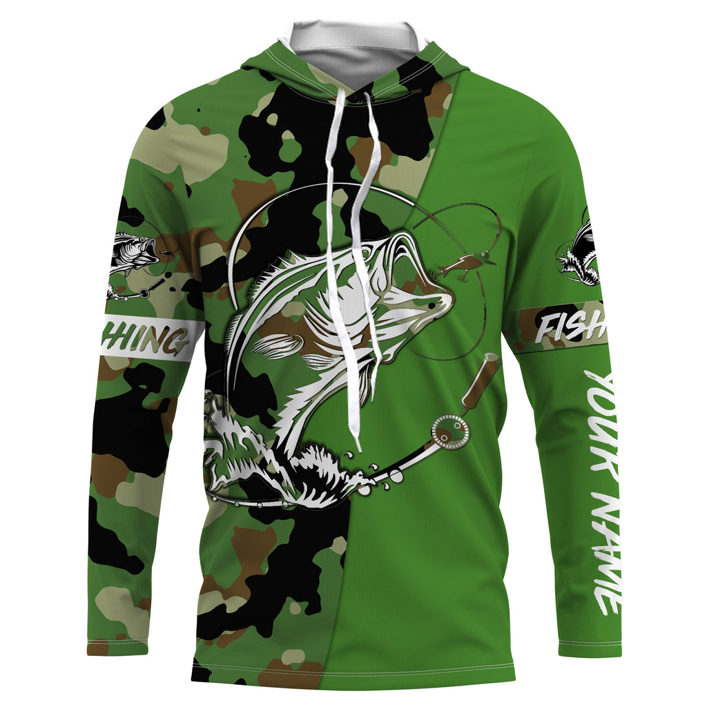 Custom Name bass fishing tattoos Camouflage green camo shirt Performance Fishing Shirt, Bass Fishing Jerseys NQS2570