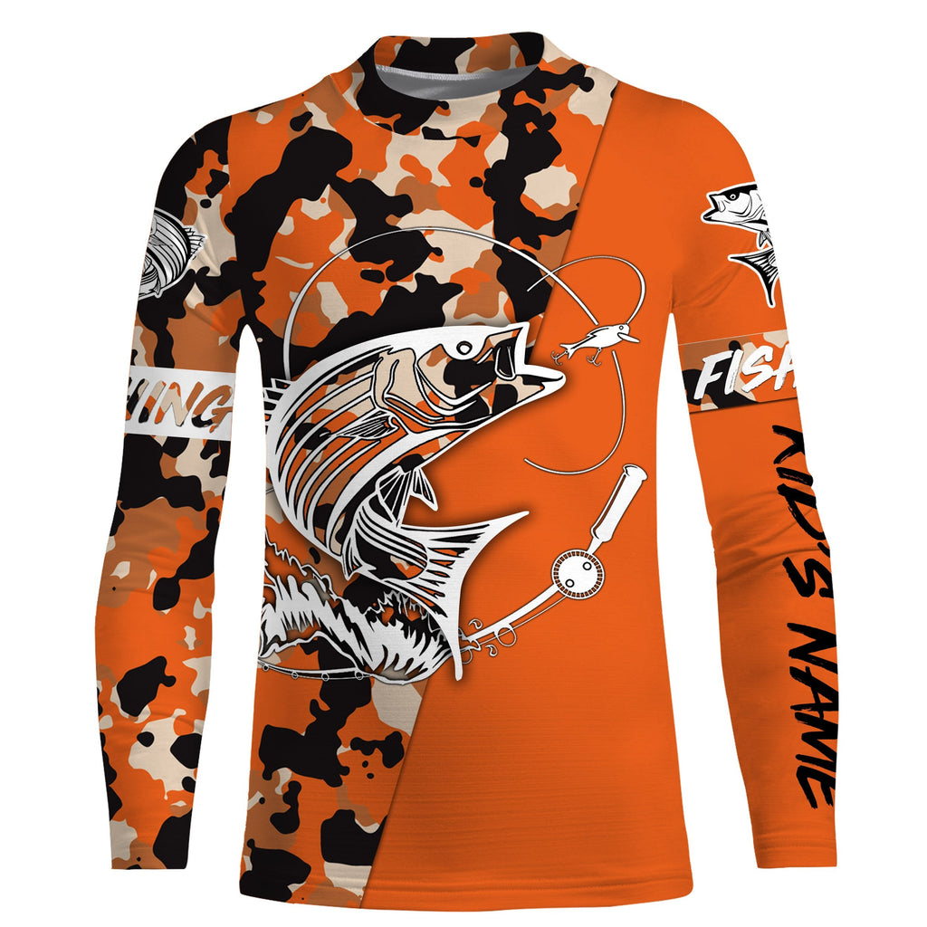 Custom Name striped bass fishing tattoos Camouflage Orange shirt Performance Fishing Shirt, Striper Fishing Jerseys NQS2507