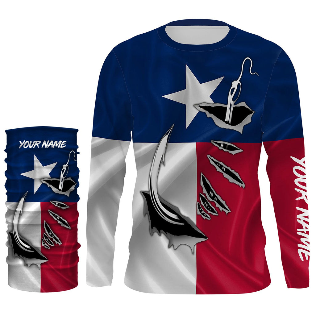 Custom Texas Flag Texas Fishing 3D Fish Hook UV Protection Long Sleeve UPF 30+ personalized fishing apparel gift - IPHW450