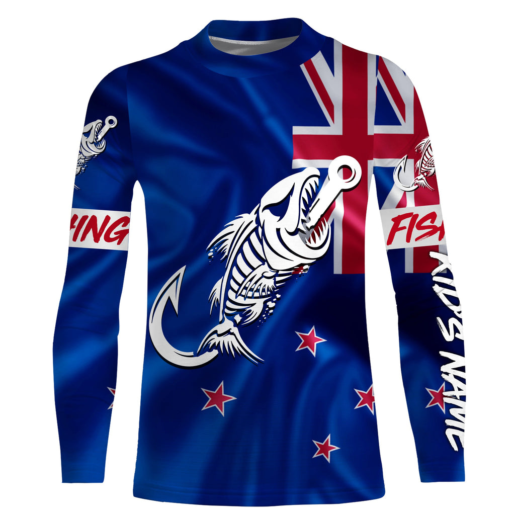 Customized New Zealand long sleeve fishing shirts New Zealand Flag Fish hook skull performance shirts NQS3328