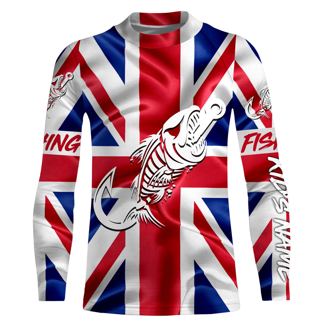 Customized UK long sleeve fishing shirts United Kingdom Flag Fish hook skull performance shirts NQS3327