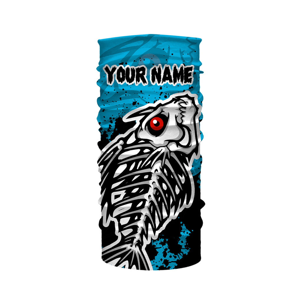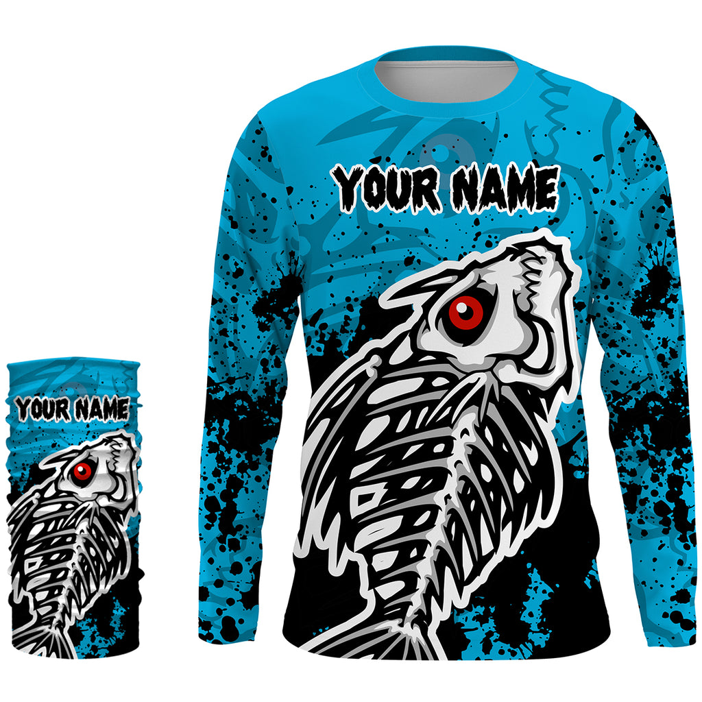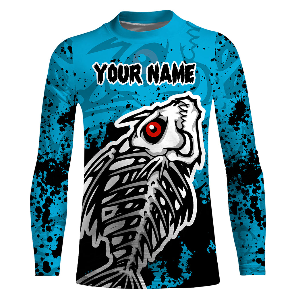Fish Skeleton Blue fishing UV protection quick dry Customize name long sleeves fishing shirts UPF 30+ HVFS016