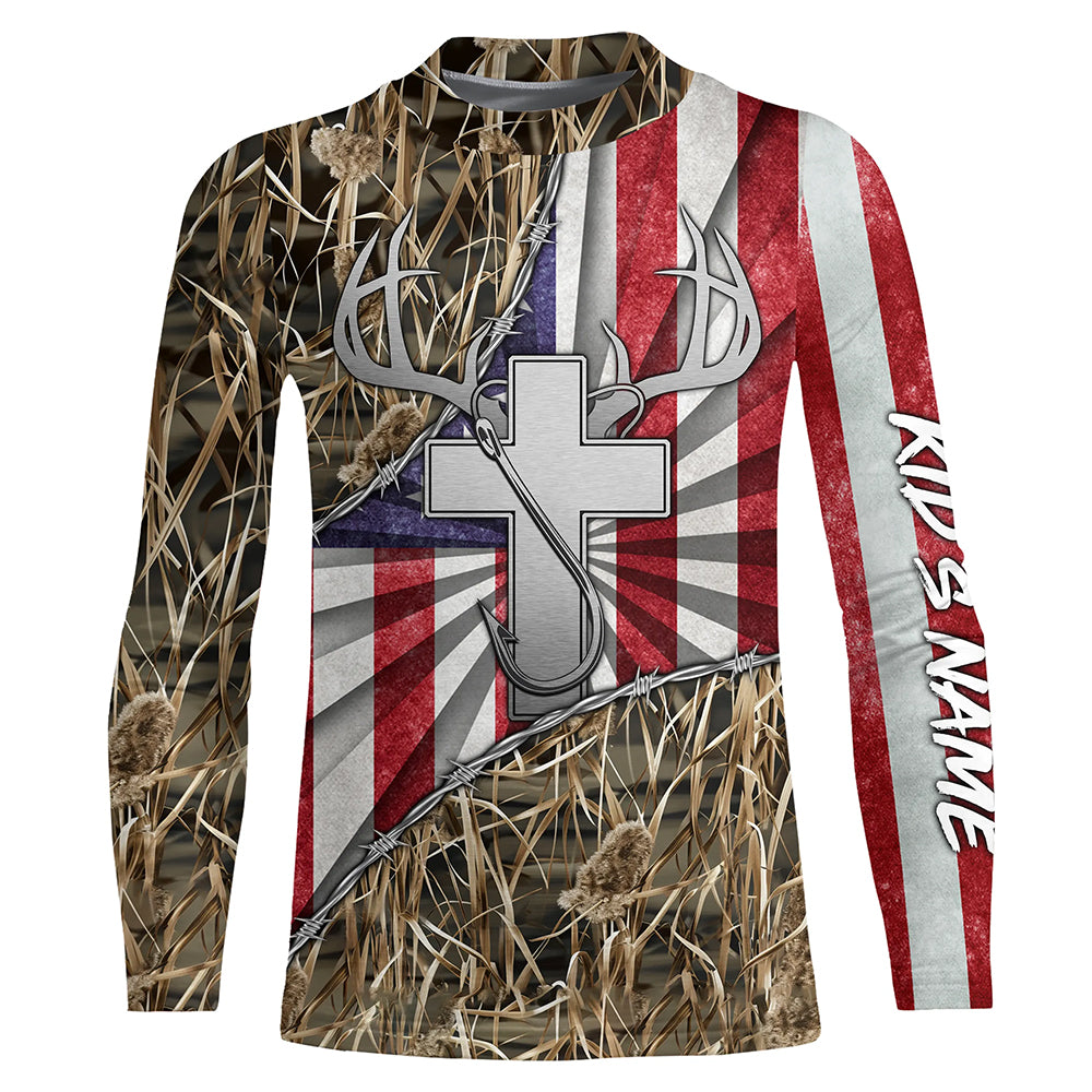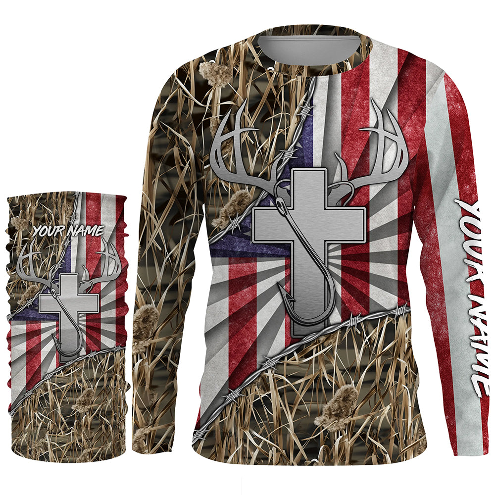 Fishing Hunting shirt Jesus lover American flag camo shirt custom name 3D All Over Printed Shirts TTN29