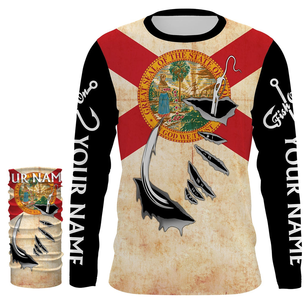 Florida Fishing 3D Fish Hook patriotic fish on UV protection custom name long sleeve fishing apparel NQS3588