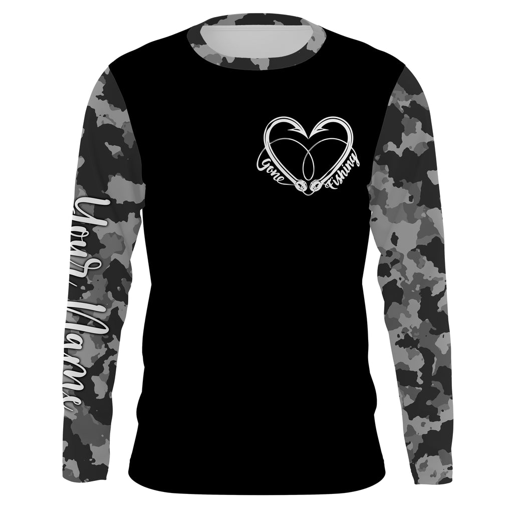 Gone fishing heart fish hook gray camo Performance fishing Shirts UV Protection TTN34