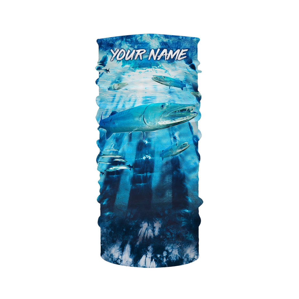 Great Barracuda Fishing blue tie dye Custom name fishing shirts for men, custom fishing apparel NQS3138