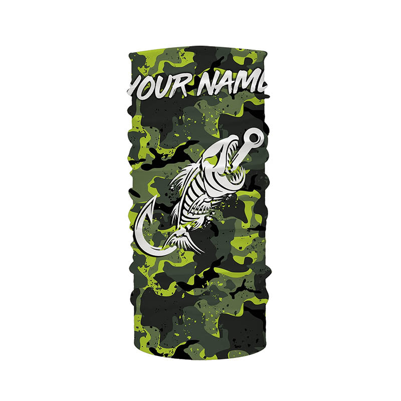 Green Camo fishing shirt Fish hook skull Custom Name sun protection mens long sleeve fishing shirt NQS3905