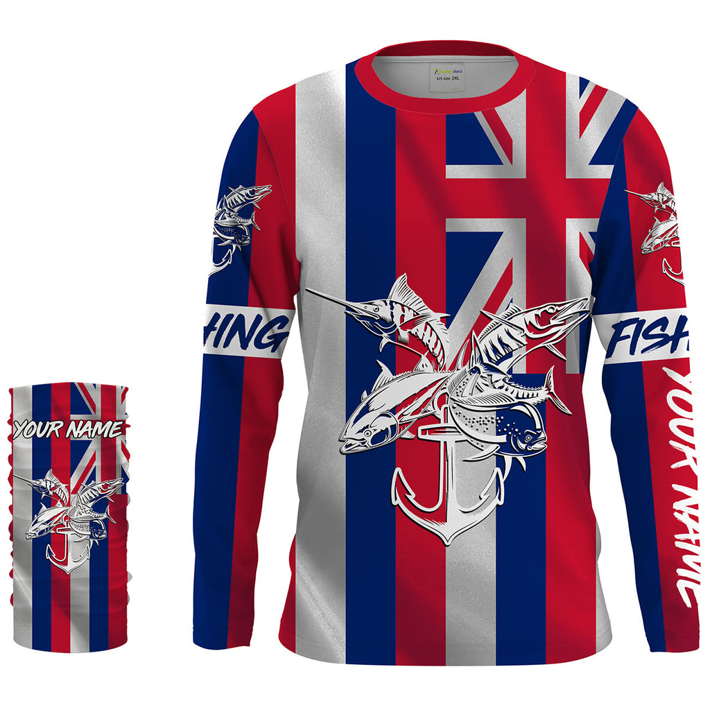 HI Fishing Grand slam custom fishing shirt Hawaiian Flag marlin, tuna, mahi mahi, wahoo NQS1481