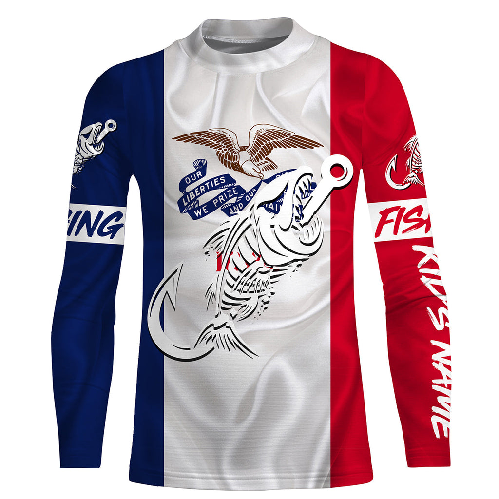 IA Fishing Custom Iowa Flag Fish hook skull Custom sun protection fishing shirts for men, women NQS3348