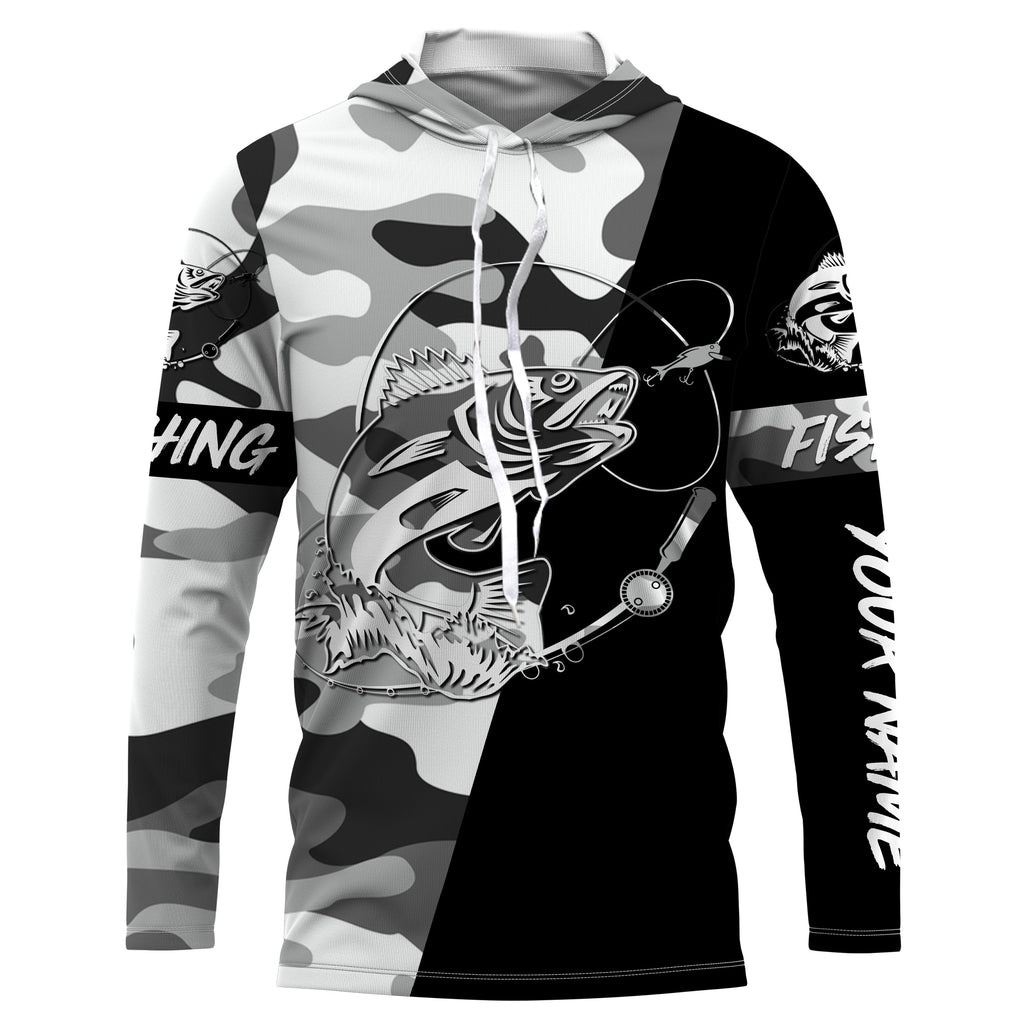 Ice fishing walleye winter camo custom name sun protection long sleeve fishing shirts, walleye jerseys NQS3838