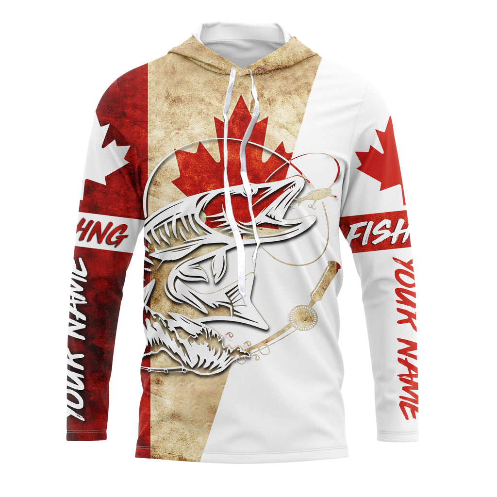 Canada Flag Musky Fishing Custom long sleeve performance Fishing Shirts, Muskie Fishing jerseys IPHW2971