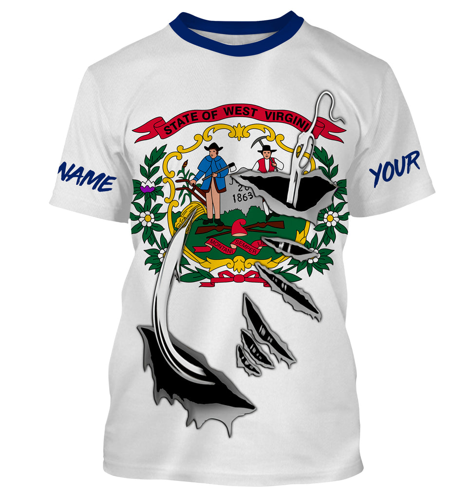 West Virginia Fishing hooks Custom Flag Fishing Shirts, West Virginia  Fishing jerseys IPHW3018