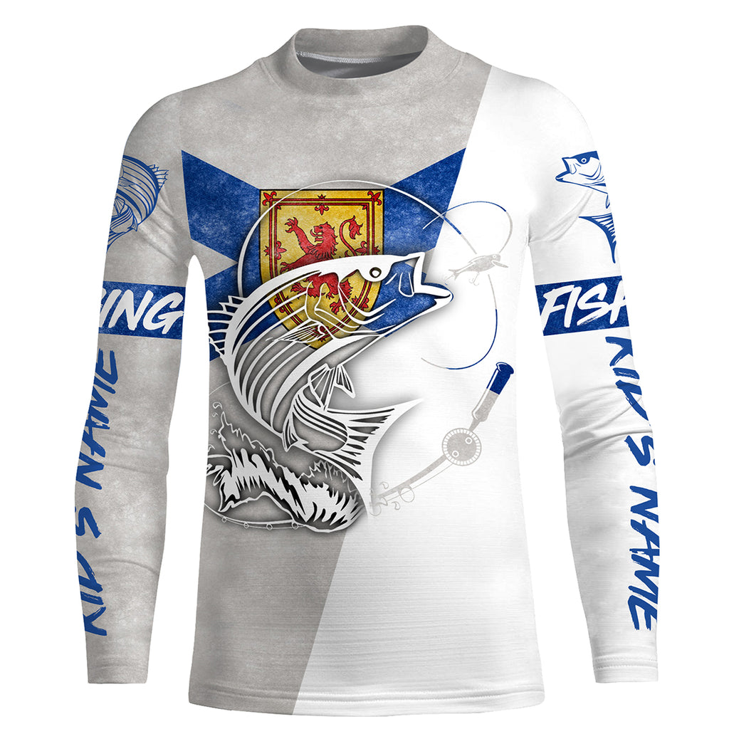 Personalized Striped Bass Long sleeve Fishing Shirts, Nova Scotia flag  Fishing apparel IPHW3212