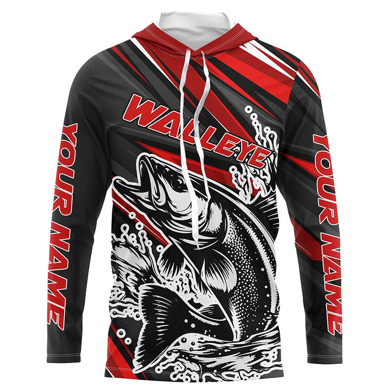 Personalized Walleye Fishing Jerseys, Walleye Fishing Long Sleeve Tournament Fishing Shirts | Red IPHW5597