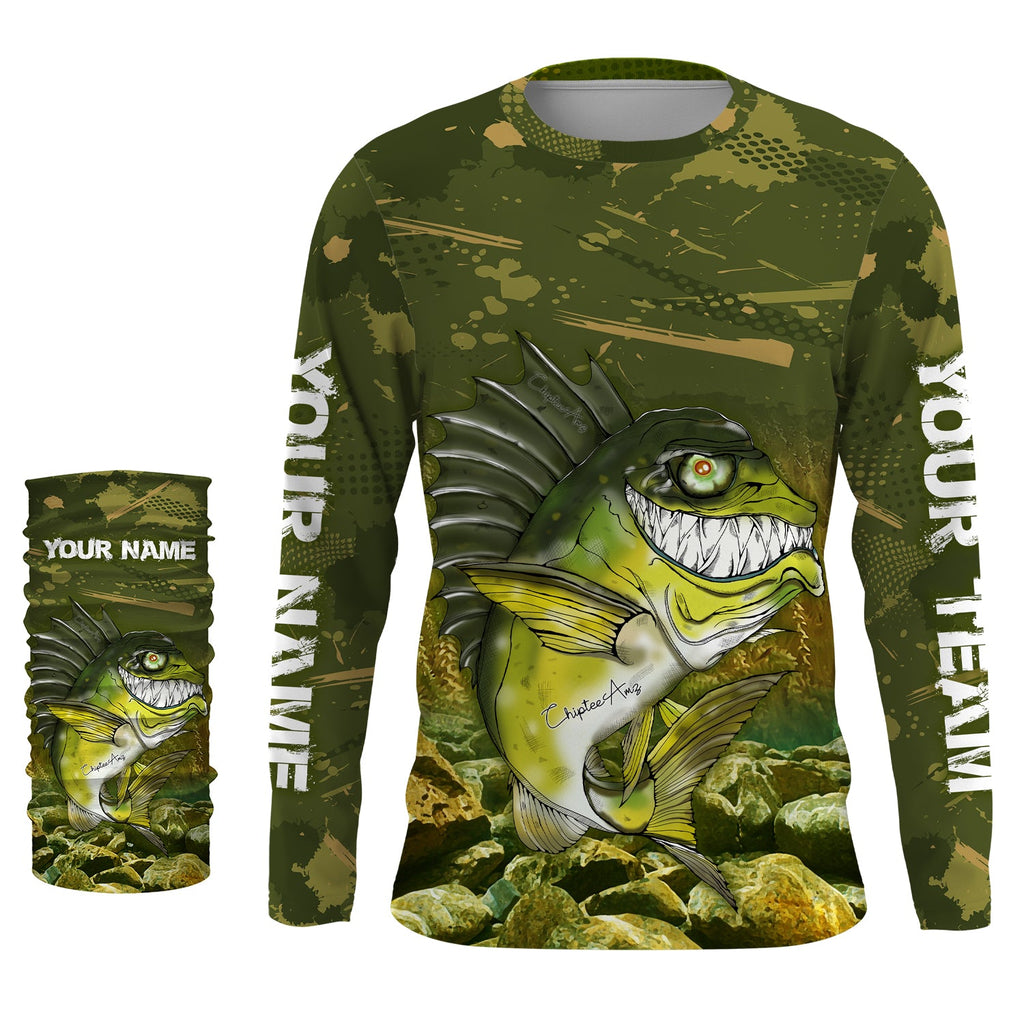 Largemouth Bass fishing camo custom name with angry bass fish ChipteeAmz's art UV protection shirts AT032