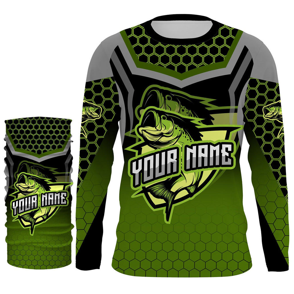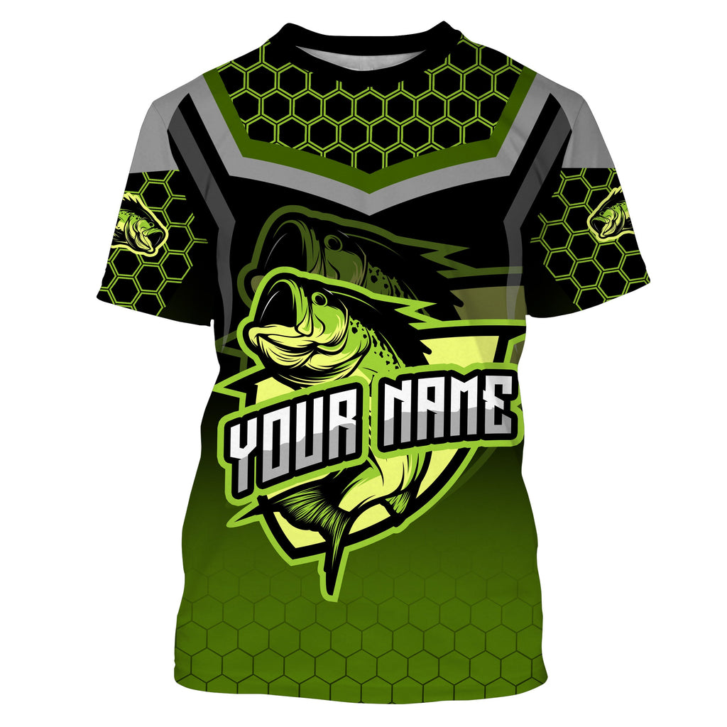 Largemouth bass fishing green Custom Name UV Protection Fishing Shirts, Bass fishing jerseys NQS3644