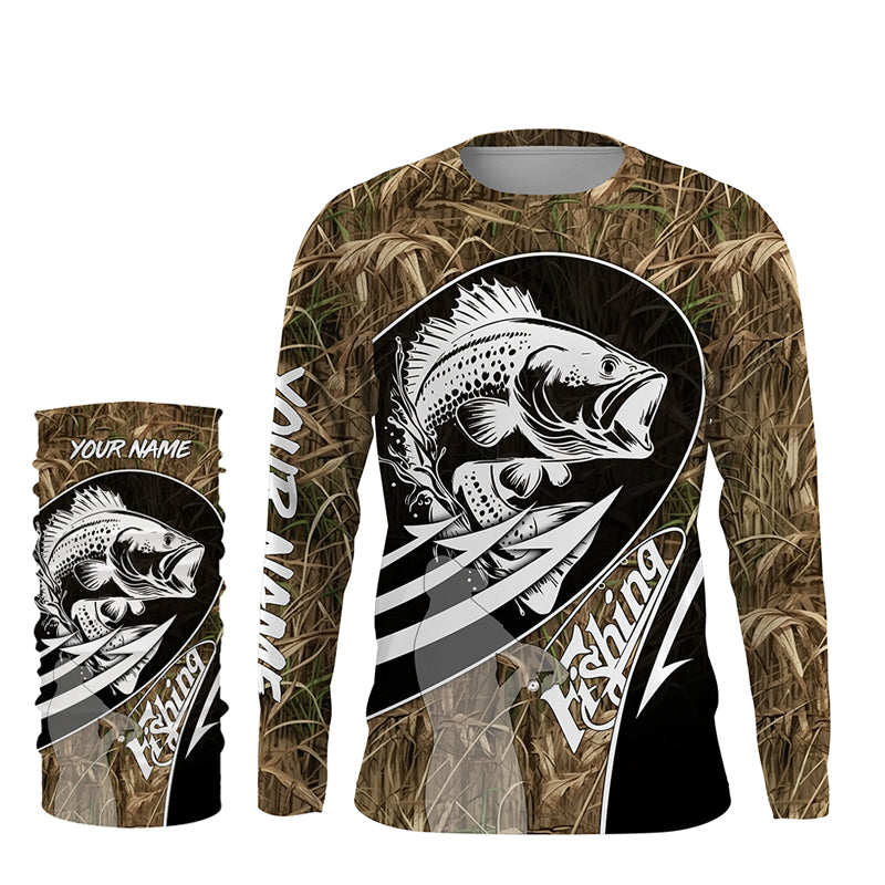 Largemouth Bass fishing tattoo camo Custom UV protection fishing long sleeve shirt NQS3237