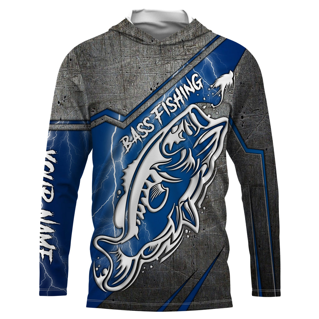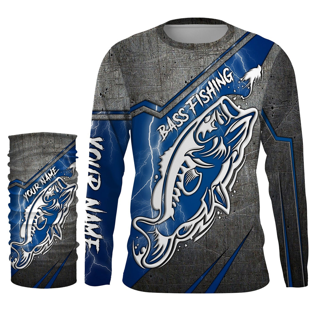 Largemouth bass fishing tattoo Custom Name 3D All over printed Fishing Shirts UV protection UPF 30+, blue lightning fishing jerseys NQS2816