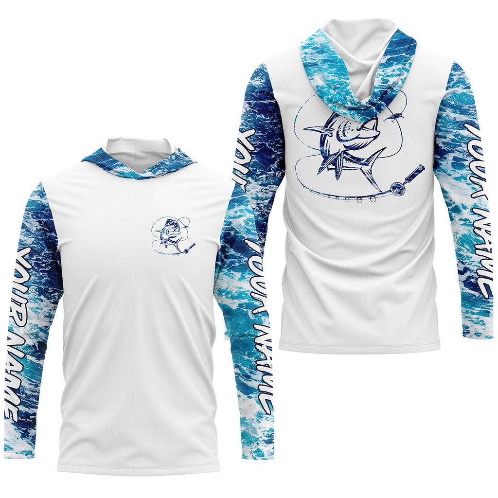 Mahi mahi Dorado Saltwater Fishing blue Custom Saltwater Long sleeve Fishing Shirts UV Protection, Sea wave camo Fishing Shirts NQS2406