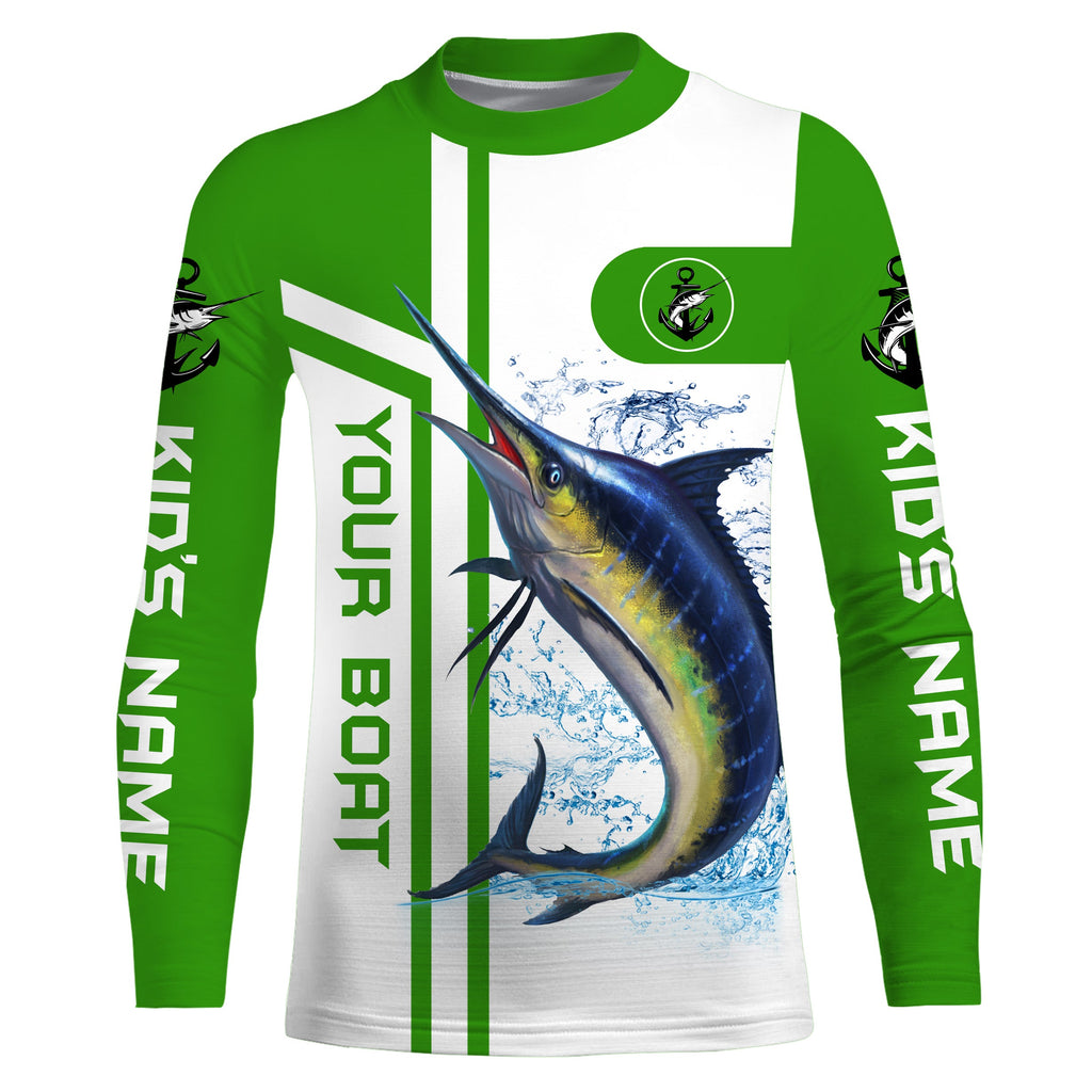 Marlin fishing Customize name and boat name fishing shirts for men, custom fishing apparel | Green - NQS3203