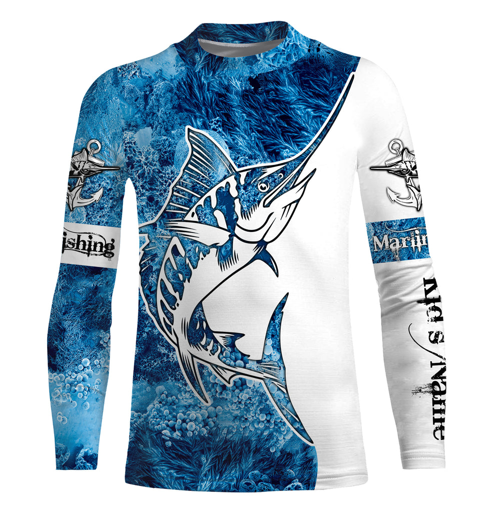Marlin Fishing Sea Camo 3D UV customize name long sleeves shirt personalized gift for Fishing Lovers TTN38