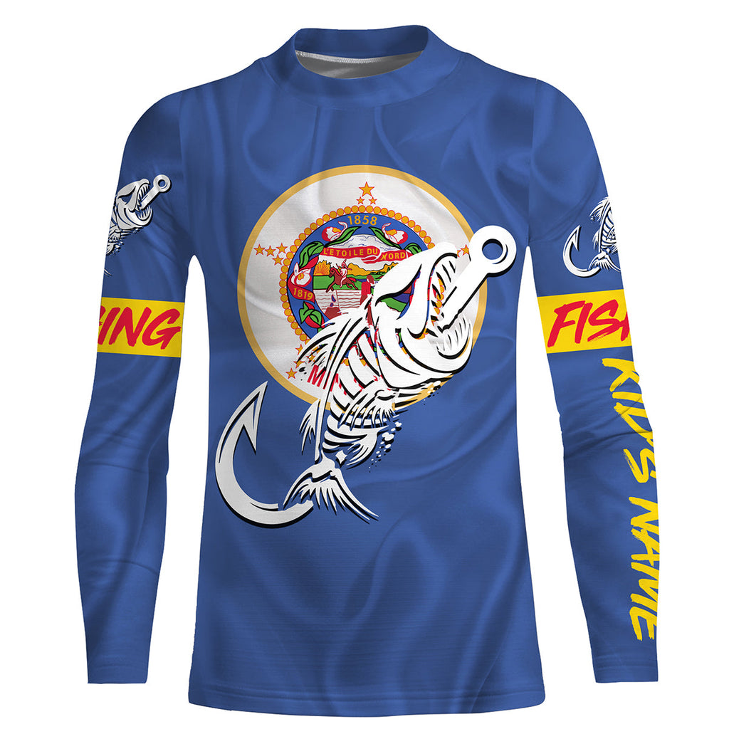 MN Fishing Custom Minnesota Flag Fish hook skull Custom sun protection fishing shirts for men, women NQS3350