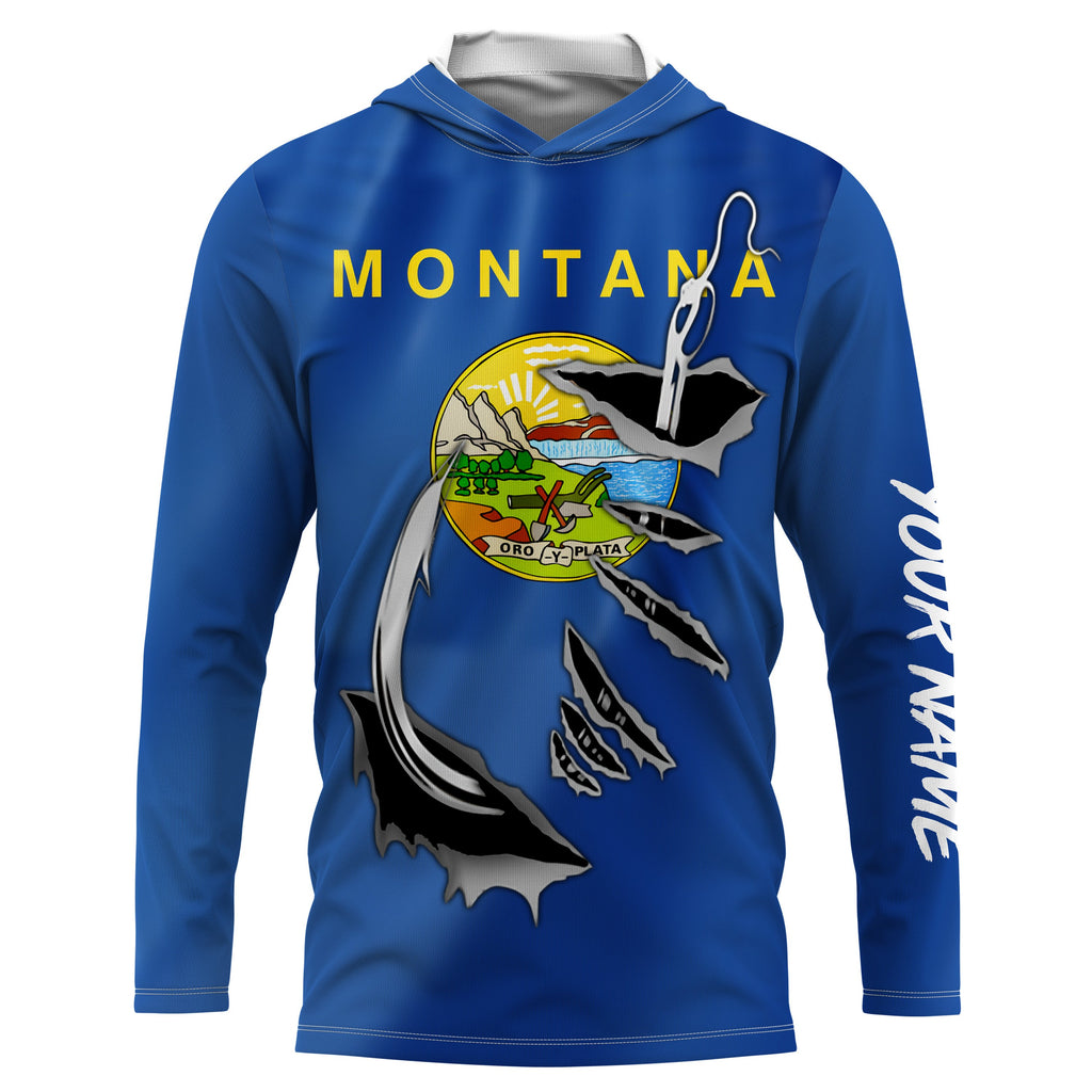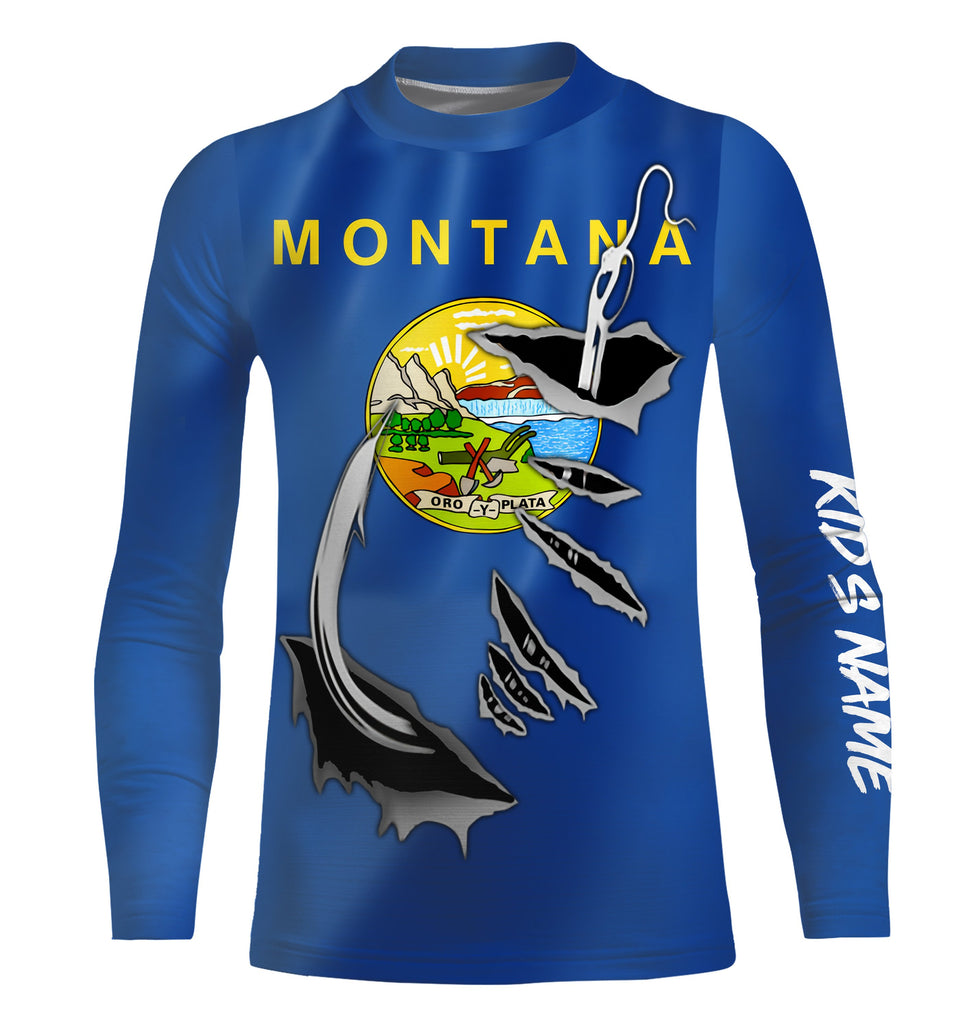 Montana Flag 3D Fish Hook UV protection custom long sleeves Fishing shirts UPF 30+ fishing apparel - IPHW477