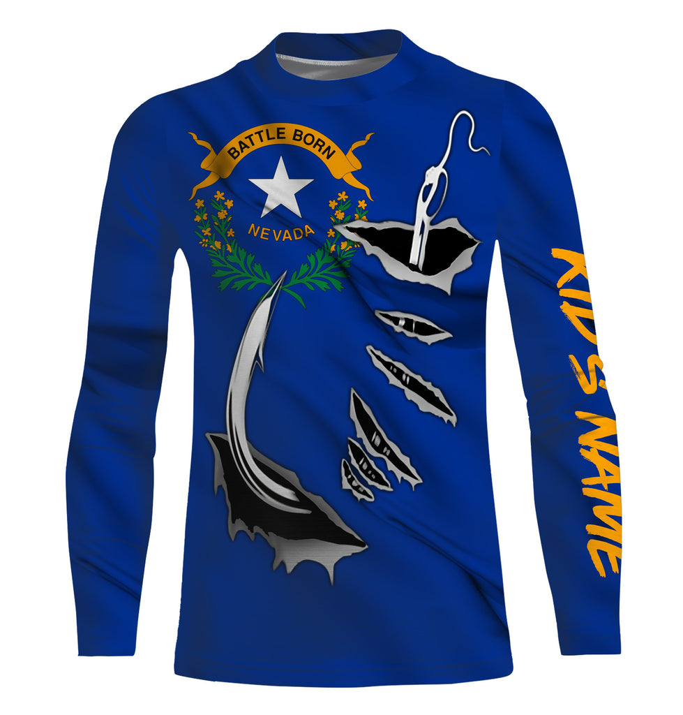 Nevada Flag 3D Fish Hook UV Protection Custom Long Sleeve performance Fishing Shirts IPHW497