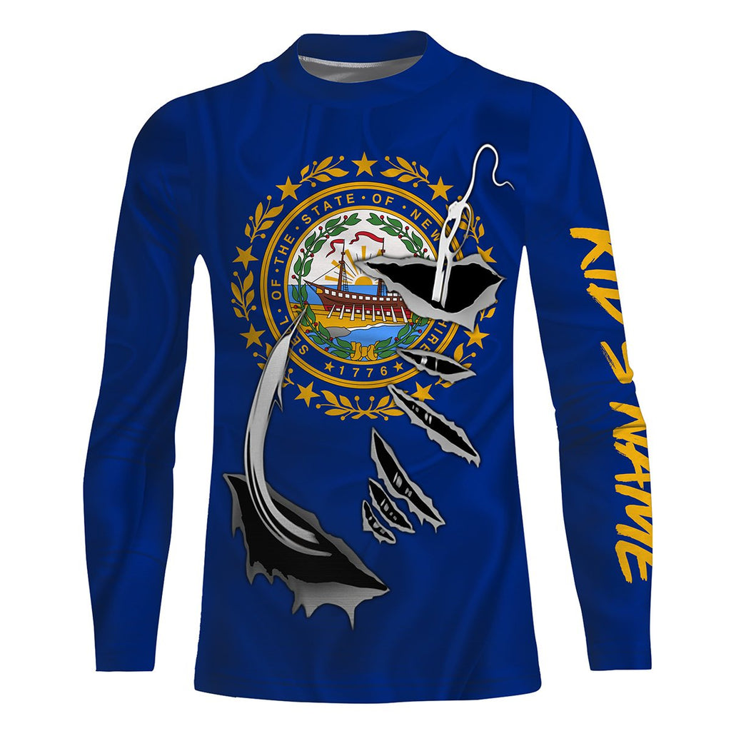 NewHampshire Flag 3D Fish Hook UV Protection Custom Long Sleeve performance Fishing Shirts IPHW498