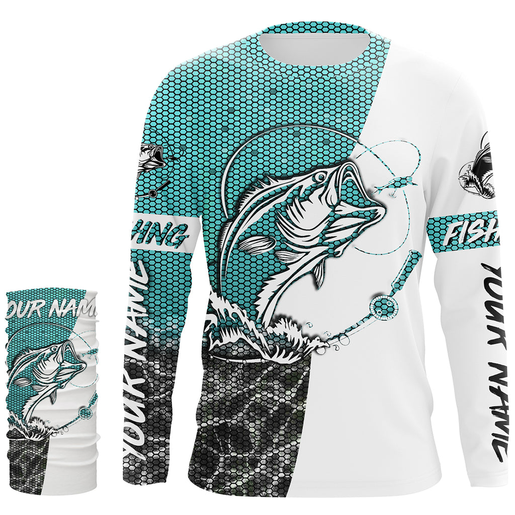 Personalized Bass Fishing jerseys, Bass Fishing Long Sleeve Fishing tournament shirts | sky blue - IPHW2218