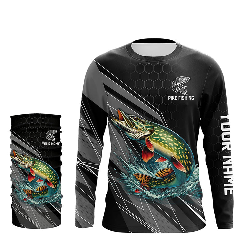 Personalized Black camo Northern Pike Fishing Jerseys, Pike Long Sleeve Fishing Tournament Shirts NQS8772