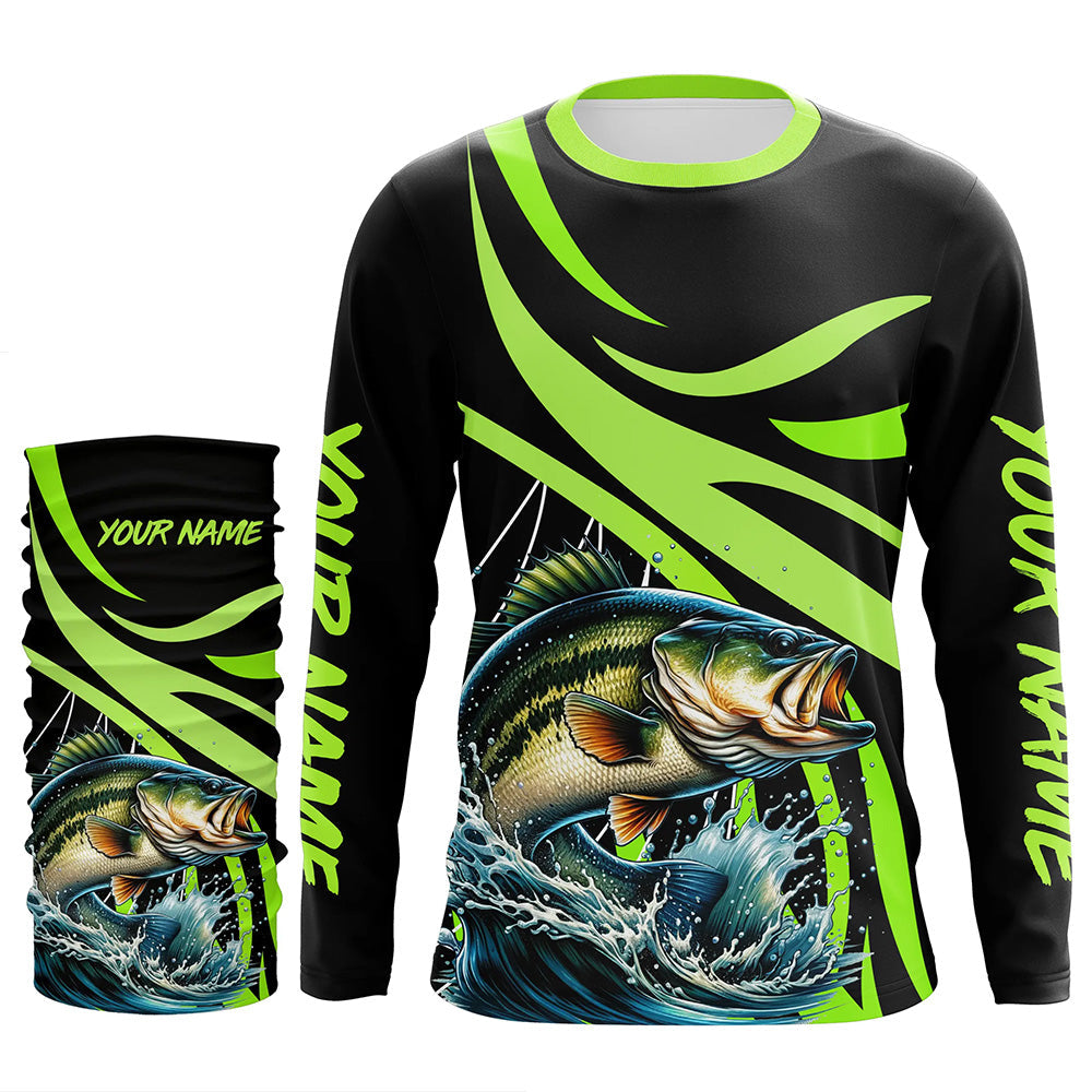 Personalized Largemouth Bass Long Sleeve Fishing Shirts, Bass Tournament Fishing Jerseys | Green NQS7421