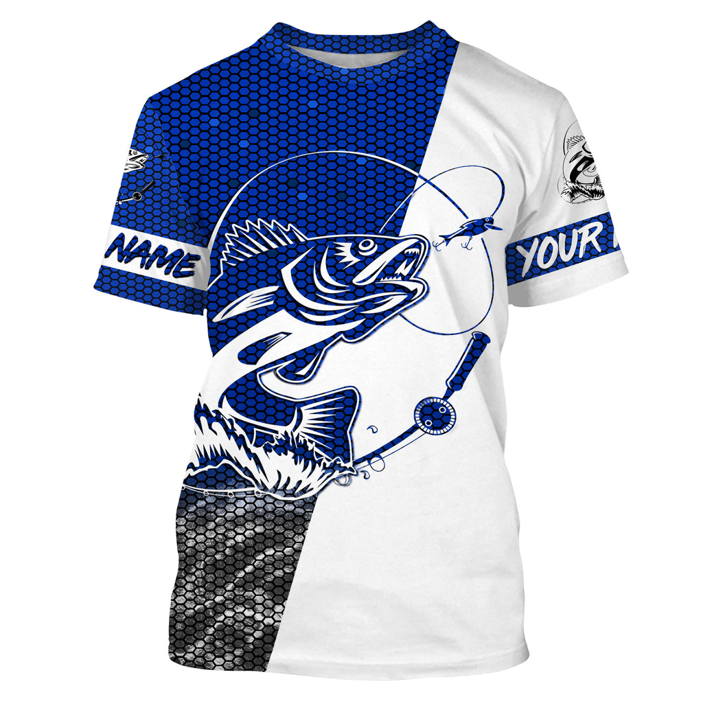 Personalized Walleye Fishing jerseys, Walleye Fishing Long Sleeve Fishing tournament shirts | blue - IPHW1864