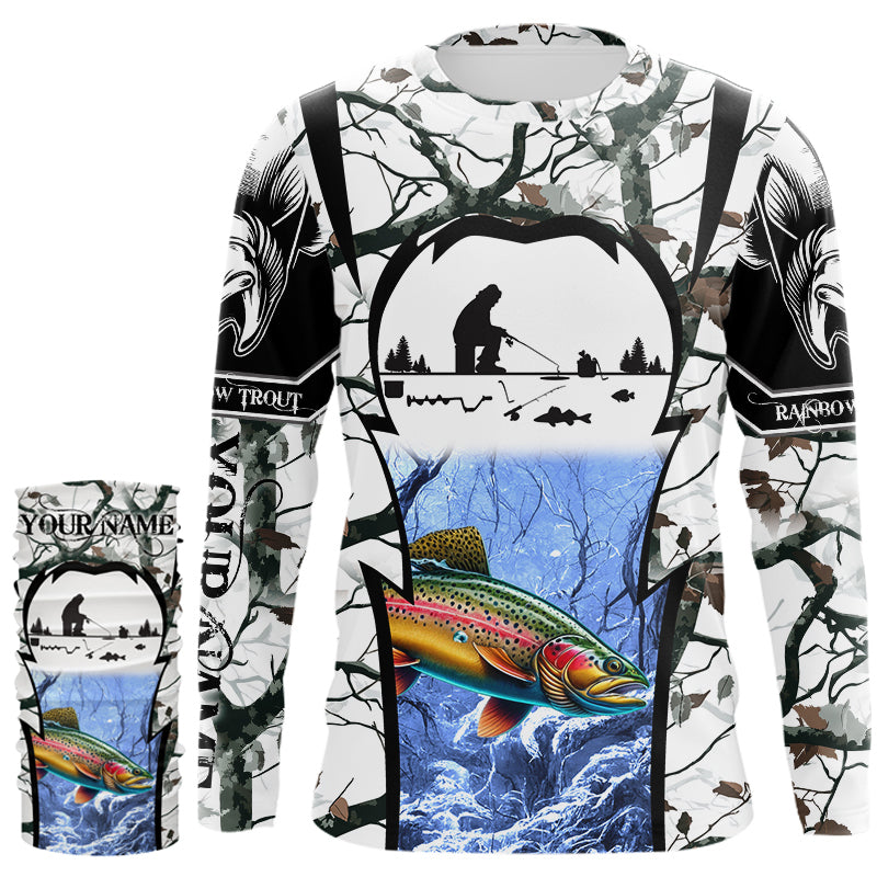 Rainbow trout Ice fishing winter camo Custom Long Sleeve fishing shirts for men, women NQS2490