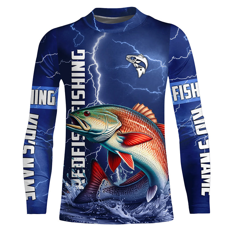 Redfish drum Fishing blue lightning jerseys custom performance Long Sleeve tournament fishing shirts NQS6330