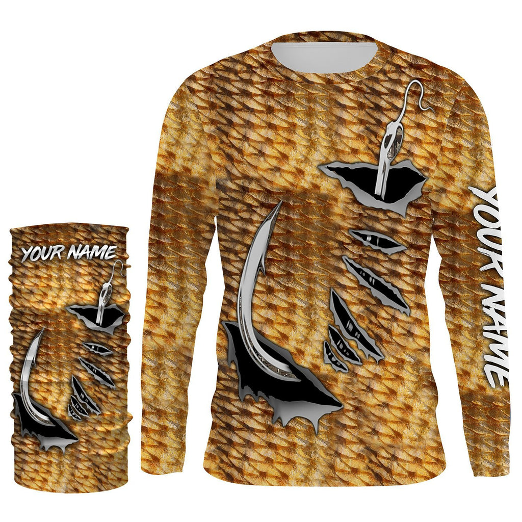 Redfish Fishing scales Fish hook Custom Long Sleeve performance Fishing Shirts | Red drum Fishing shirts - IPH1920